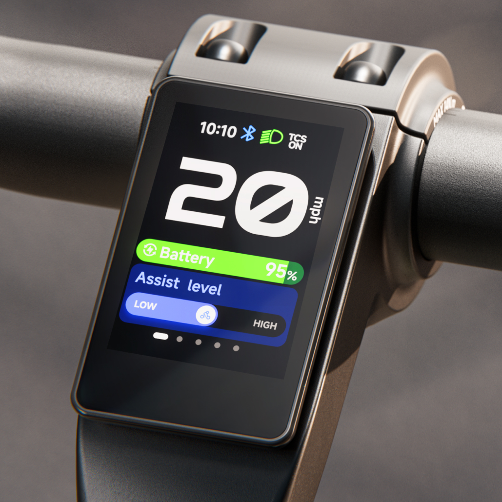 The water-resistant, high-resolution TFT automatically adjusts brightness for maximum readability in differing light conditions. Track & view ride metrics, get notice of battery range & assist level, connect phone with Bluetooth to monitor incoming calls, navigate and more.
