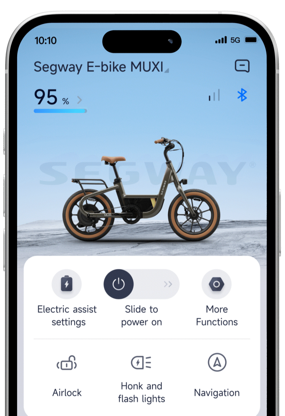 The Segway Mobility App works together with the eBike display lets you check charge state, manage remote functions like unlock, share, lost mode, adjust user settings and modes, purchase accessories and more.